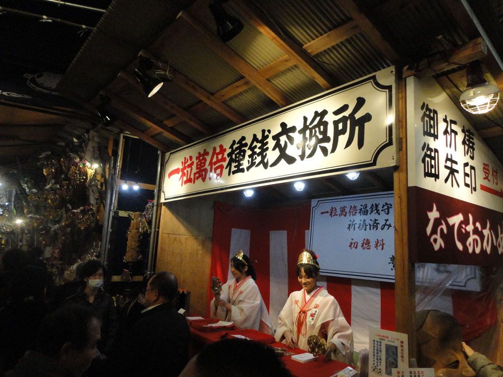 PigTailLeo 跟我們台灣向寺廟借錢一樣,日本也會跟神明借錢,通常借個100之類的,明年再還更多給神明 還有另一個地方可以進去哦@@我們也不曉得,就跟著人潮走,聽美樂說你們也有買到熊手對吧?!
