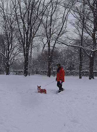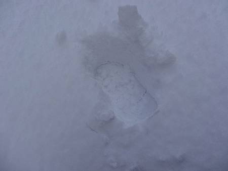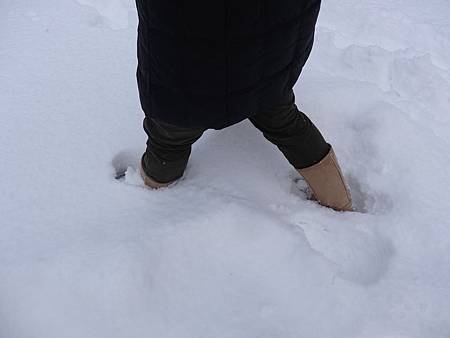 看看這雪積得有多深,一踩下去,馬上出現一個洞,而且還沒踩到底
